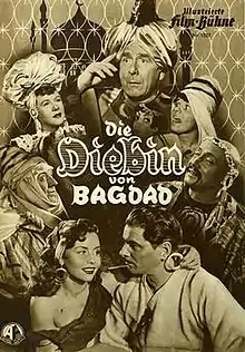 The Thief of Bagdad (German: Die Diebin von Bagdad) is a 1952 West German musical comedy film directed by Karel Lamac and starring Theo Lingen, Paul Kemp, Sonja Ziemann and Rudolf Prack.[1] It is not a remake of the 1940 film of the same name, but a comedy about the magic tricks of a female thief in Old Baghdad. It was filmed at the Bendestorf Studios in Lower Saxony. The film's sets were designed by the art directors Heinrich Beisenherz and Alfred Bütow.