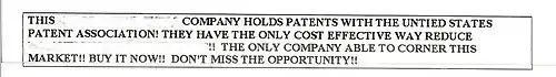 Modern stock scams using the name of the United States Patent Association