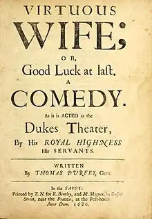 The Virtuous Wife; Or, Good Luck At Last is a 1679 comedy play by the English writer Thomas D'Urfey. It was originally performed by the Duke's Company at the Dorset Garden Theatre in London.