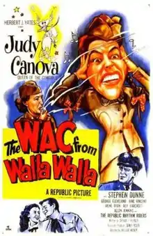 The WAC from Walla Walla is a 1952 American comedy film directed by William Witney and written by Arthur T. Horman. The film stars Judy Canova, Stephen Dunne, George Cleveland, June Vincent, Irene Ryan and Roy Barcroft.[1][2][3] The film was released on October 10, 1952, by Republic Pictures.