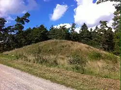 Once upon a time, a father was gathering nuts in the forest for his daughter. One nut had a worm inside, which the daughter took care of. Over time, the worm grew into a dragon.[2] The daughter was not able to send away the dragon. On the advice of the villager, the daughter left with the Lindworm for an island. However, the island did not have a hill, so the daughter and dragon moved to the north of the island. Daughter and dragon lived in Lundø island for several years. Dragon lived digging hole in Lundø island. There was the place with the hill called Hald. The dragon and daughter lived in Hald. It is said that the place was called Lindhöj.[3][4](mean "The hill of the dragon").