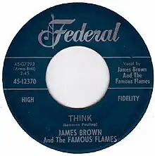 "Think" was released as a single on the King Records subsidiary label Federal Records and charted #7 R&B and #33 Pop. ("Think"'s B-side, "You've Got the Power", was also a hit, reaching #14 R&B and #86 Pop.)[4] It was Brown and The Famous Flames' first recording to enter the Pop Top 40, and their next-to-last single for the Federal label before they switched to King. "Think" was also included on Brown's 1960 album of the same name.