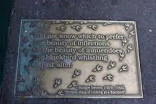 Plaque in New York, with section five of "Thirteen Ways of Looking at a Blackbird".