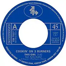 "This Girl" is a song by Australian funk trio Cookin' on 3 Burners, featuring vocals by Kylie Auldist, released on 22 June 2009 as the second single from the group's second album, Soul Messin.[1][2] A remix by French DJ and record producer Kungs[3] was released as a digital download on 19 February 2016 by House of Barclay as the lead single from his debut studio album, Layers (2016),[4][5] which found major success across Europe.