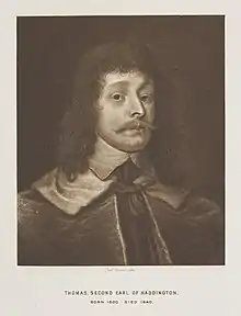 Following Lord Haddington's death in 1640, he was succeeded in his titles by his eldest son, Thomas.[6]