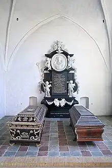 - ↑ "Gravgitter udført 1709 til Thomas Kingos gravkapel. Fraugde Kirke" (in Danish). Nationalmuseet. Archived from the original on 18 May 2021. Retrieved 16 June 2022.
