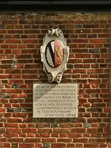 After foiling the plot Knyvet was given charge of the education of the short-lived Princess Mary. His tomb epitaph mentions his wife's role in the household of Mary and her sister Sophia, and Knyvet's other offices.[11] By royal grant of a peerage he entered the House of Lords as Baron Knyvet of Escrick, Yorkshire in 1607. He was appointed a Privy Councillor, member of the council to Queen Anne, and Warden of the Mint. In 1613, the manor of Staines was granted him outright.[12]