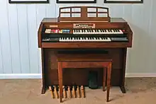 • Repeat Percussion - Playable from either manual, Repeat Percussion emulated the sound of percussive instruments such as a marimba or banjo. The repeat rate was easily adjusted via a thumbwheel on most models and rotary control on smaller models such as the AR1