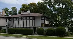 The Thomas P. Hardy House is a Frank Lloyd Wright-designed Prairie school home in Racine, Wisconsin, USA, that was built in 1905.[2] The street-facing side of the house is mostly stucco, giving the residents privacy from the nearby sidewalk and street, but the expansive windows on the other side open up to Lake Michigan.[3]