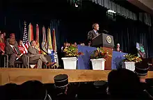 - ↑ "President George W. Bush announces his Lessons of Liberty initiative at Thomas S. Wootton High School in Rockville, MD. The initiative is an opportunity for American students to learn more about our country and its values, as well as the people that have been called upon to defend its freedom. White House photo by Tina Hager". November 1, 2001. Retrieved November 1, 2017.