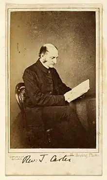 Thomas Thellusson Carter SSC (19 March 1808 – 28 October 1901[1]), often known as T. T. Carter, was a significant figure in the Victorian Church of England. He was responsible for reintroducing some Catholic practices to the church and being the founder of the Confraternity of the Blessed Sacrament. He also founded several charitable organisations. He was a prolific writer on church matters and a project exists to collect and collate all his writings. He was for 36 years the Rector of Clewer and an honorary canon of Christ Church Cathedral, Oxford.[2][3][4]