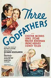 Three Godfathers is a 1936 American Western film directed by Richard Boleslawski and released by Metro-Goldwyn-Mayer starring Chester Morris, Lewis Stone, Walter Brennan, and Irene Hervey. It was adapted from the novel of the same name by Peter B. Kyne. Three bank robbers find a newborn baby and his dying mother in the desert.