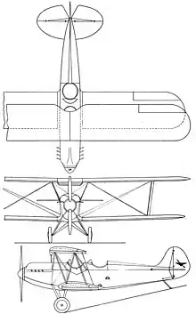 The Thunderbird made its first flight 11 July 1926.[1] By the autumn of 1927 numerous modifications had been made in preparation for production.[2] These included laminated, rather than solid, wing spars, Warren girder ribs and a steel, rather than wire, cross-braced fuselage. A new, split axle undercarriage was introduced, with axles hinged from the central fuselage underside and equipped with rubber-chord shock absorbers. The tailskid was now steerable.[2][1]