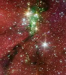 - ↑ Pillai, Thushara G. S.; Clemens, Dan P.; Reissl, Stefan; Myers, Philip C.; Kauffmann, Jens; Lopez-Rodriguez, Enrique; Alves, F. O.; Franco, G. a. P.; Henshaw, Jonathan; Menten, Karl M.; Nakamura, Fumitaka; Seifried, Daniel; Sugitani, Koji; Wiesemeyer, Helmut (December 2020). "Magnetized filamentary gas flows feeding the young embedded cluster in Serpens South". Nature Astronomy. 4 (12): 1195–1201. arXiv:2009.14100. Bibcode:2020NatAs...4.1195P. doi:10.1038/s41550-020-1172-6. S2CID 221995526.