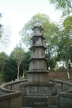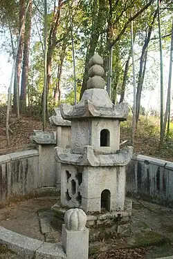 The date of construction of Iron Stove Temple is unknown.[1][3][4] There were two ancient tea trees in the temple.[3][4] It is said that the tea trees was planted by Yue Fei when he went to the Dongting Lake area during the Zhong Xiang and Yang Mo Uprising (钟相、杨么起义) from Jianyan era to Shaoxing era (1130–1335) in the Southern Song dynasty (1127–1279).[3][4]
