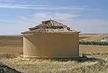 "Tierra de Campos" is located on a fertile, elevated plateau with an average height of around 720 metres (2,360 ft), its geography is typical of the Meseta Central. The ground is mostly made up of quite compact clay. The climate is continental with long, cold winters and short, hot summers. Rivers naturally irrigating the area are sparse and traditionally the land in Tierra de Campos has been used for dryland farming. The Channel of Castile, which cuts across this comarca, was developed for transport purposes but developed into an irrigation system. Some of the wetlands in Tierra de Campos, like the Laguna de la Nava de Fuentes and the Lagunas de Villafáfila, are important for the ecology of the region.[3] There are few natural forested areas left. The Tierra de Campos is the place with the highest concentration of bustard in the Iberian Peninsula, and possibly in the world.[4]