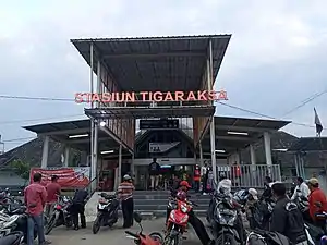 Tigaraksa Station (TGS) is a large class type C railway station located in Cikasungka, Solear, Tangerang Regency. The station, which is located at an altitude of +51 meters, is included in the Operation Area I Jakarta. Even though it is named Tigaraksa, this station is not located in the Tigaraksa district, but is located in the south of the Tigaraksa district itself.[2]