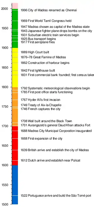 This is a timeline of major events in the history of Chennai.