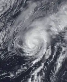 Satellite image of Hurricane Nicole, a moderate Category 1 hurricane