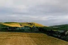 ![]() Veensgarth, with Burra Dale wind farm in the background, along with Loch of Tingwall | |