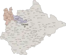 Tirana District (Albanian: Rrethi i Tiranës) was one of the 36 districts of Albania, which were dissolved in July 2000 and replaced by 12 newly created counties. It had a population of 523,150 in 2001, and an area of 1,193 km2 (461 sq mi).[1] Its territory is now part of Tirana County: the municipalities of Tirana, Kamëz and Vorë.