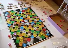 The main game board consists of 96 interlocking hexes, each with a specified terrain type and color.