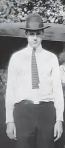 Gifted with extraordinary eyesight and hand-eye coordination, he was a skilled athlete, crack shot and a golfer good enough to turn professional.[9] Raised in a poor environment far from exclusive golf courses, Thomas did not take up golf seriously until he was in his early thirties, but improved very quickly during an extended stint in San Francisco, where he took lessons from club professionals and honed his skills. From then on he played several times per week for the next 20 years. In an era when the top pro golfers would be fortunate to make $30,000 a year, Thomas (who, after a misprint in a New York newspaper, let people think his name was Thompson) could make that much in a week hustling rich country club players. Asked whether he would ever turn professional, he replied, "I could not afford the cut in pay".[9] Hall of Fame golfer Ben Hogan, who traveled with him in the early 1930s for money games, later called Titanic the best shotmaker he ever saw.[6] "He can play right- or left-handed, you can't beat him", said Hogan.[10] One hustle of his was to beat a golfer playing right-handed, and then offer double or nothing to play the course again left-handed as an apparent concession. One thing his opponent usually did not know was that Thomas was naturally left-handed.[11] Thomas' genius was in figuring out the odds on almost any proposition and heavily betting that way. He also had to perform under pressure, and most often did.