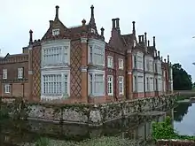 Tollies Follies was an epither given to a series of pubs built by Tollemache Brewery primarily in their home town of Ipswich. They were designed by the architect John Shewell Corder and modelled on Helmingham Hall, a moated manor house located in Helmingham, Suffolk, about 10 miles north of Ipswich.[4] This building had been started by John Tollemache – an ancestor of the Tollemache brothers in 1480. The building had remained in the ownership of the Tollemache family ever since. The building exterior has been altered several times including by the architect John Nash in 1800.