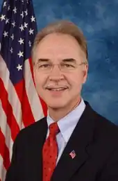 Thomas Edmunds Price (born October 8, 1954) is an American physician and Republican Party politician who served as the U.S. representative for Georgia's 6th congressional district, encompassing the northern suburbs of Atlanta, from 2005 to 2017.[1] While in Congress, Price chaired the House Committee on the Budget,[2] Republican Study Committee and Republican Policy Committee.[3][4] He was appointed Secretary of Health and Human Services by President Donald Trump and served in that role from February to September 2017.