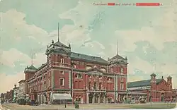![]() Tomlinson Hall, with the City Market to the right, c. 1909 | |