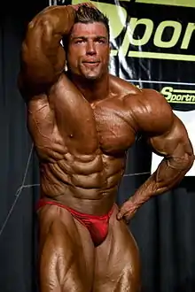 He was then invited to compete on the bodybuilding stage. At the age of 21, he entered his first physique contest, the 2005 IFBB Austrian Cup in Wels. He was winner of the junior class over 75 kg and overall juniors' winner.[3] At this event Breznik was discovered by Ultimate Nutrition, a sports nutritional supplements company that offered him a sponsorship contract. Once a year he went to the U.S. for training and photo shoots [4] and spent some time at fairs and exhibitions. At the FIBO in Essen, he was always invited to performances of his physique.