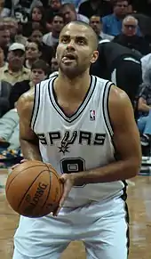 William Anthony Parker Jr. (born 17 May 1982)[1] is an American-French former professional basketball player and majority owner of ASVEL Basket in the LNB Pro A. Himself the son of a basketball pro, Parker started his career at Paris Basket Racing in the French basketball league before joining the San Antonio Spurs of the National Basketball Association (NBA). He was selected by the Spurs with the 28th overall pick in the 2001 NBA draft, and quickly became their starting point guard. Parker won four NBA championships (2003, 2005, 2007, and 2014), all of which were with the Spurs. He also played for ASVEL Basket in France during the 2011 NBA lockout, and finished his playing career after one season with the Charlotte Hornets. He retired as the ninth leading scorer and fifth leading passer in NBA playoffs history.