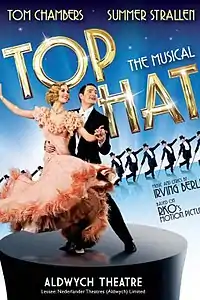 Top Hat the Musical is a 2011 stage musical based on the 1935 film of the same name, featuring music and lyrics by Irving Berlin with additional orchestration by Chris Walker. The show opened on 16 August 2011 at the Milton Keynes Theatre, touring the United Kingdom before transferring to the Aldwych Theatre in London's West End. Top Hat won multiple 2013 Laurence Olivier Awards after receiving seven nominations. The musical closed in London on 26 October 2013, with a UK and Ireland tour commencing in August 2014.