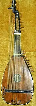 It appeared in the second quarter of the 18th century, probably influenced by the central European Theorbo and the Angelique which, according to Ukrainian sources Cossack mercenaries would have encountered in the Thirty Years' War.[2] According to Marcin Ludwicki and Roman Turovsky, the torban's inventor was Tuliglowski, a Paulite monk from Jasna Gora, who designed the instrument between 1736 and 1740.[3][4] The Torban was manufactured and used mainly in Ukraine, but also occasionally encountered in neighbouring Poland and Russia (only 3 luthiers could be identified from the surviving instruments).[5] There are about 40 torbans in museums around the world, with the largest group of 14 instruments in St. Petersburg.[6] The term "torban" was often misapplied in the vernacular in western Ukraine to any instrument of the Baroque Lute type until the early 20th century.