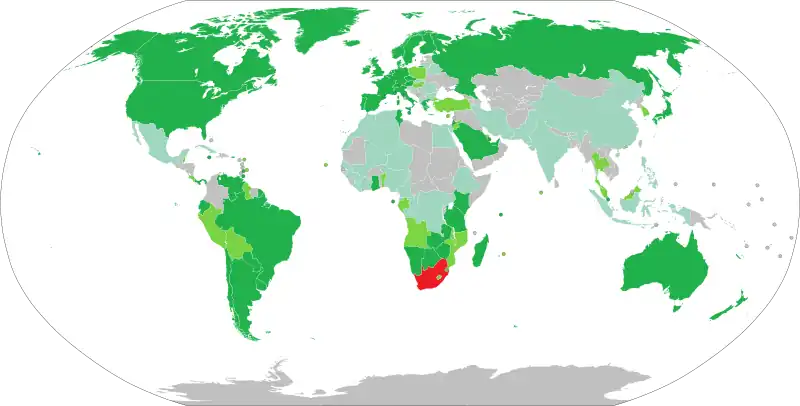 Visitors to South Africa must obtain a visa from one of the South African diplomatic missions unless they come from one of the visa exempt countries, in which case they get what is called a "Port of Entry Visa". Visitors who require a visa must apply in person and provide biometric data.[11] See also the visa policy of South Africa.