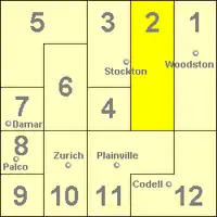 Rooks County was established with four townships: Bow Creek, Lowell, Paradise and Stockton. That number increased to seven by 1878[2] and twenty three in 1925. The twenty three townships were in place until 1971 when the number was reduced to the current twelve townships.[3]