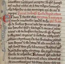 The information in the Tractatus represents the answers given by a certain Russian bishop named Peter to questions posed to him by Pope Innocent IV and the cardinals late in 1244 in advance of the First Council of Lyon.[5][6] Peter is not known from any other source. Every version of the Tractatus refers to him as "archbishop of Russia" (archiepiscopus Russiae) except the Linz manuscript, which specifies him as archbishop of Belgorod (archiepiscopus de Belgrab).[7] Belgorod was in fact a mere diocese, but its bishop frequently acted as vicar for the metropolitan of Kiev.[7][8] The see of Kiev was vacant between late 1240 and the appointment of Cyril II in 1246, which explains why Westerners referred to Peter as an archbishop.[9] Although various identifications have been put forward in the past, the identification of Peter with a previously unidentified bishop of Belgorod is now generally accepted.[10] The identification with the Abbot Peter Akerovich is discredited.[7]