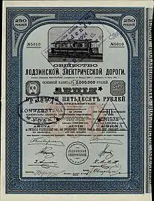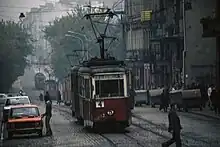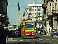 Trams in Łódź made their first appearance on 23 December 1898.[4] Łódź was the first city to have electric trams in what was then Congress Poland. Initially, there were two fairly short tram lines that both served the city centre area; by February 1899 their number was doubled. In 1901, the first suburban tram lines started – the Pabianice and Zgierz lines.[5] Both of these initiatives were the result of the activities of private companies in which German manufacturers dominated.