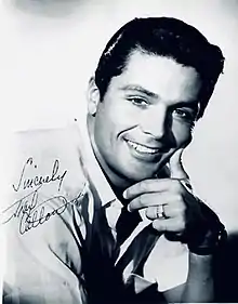 Colton signed an exclusive contract with 20th Century Fox in 1960 and was given a small part in the film adaptation of The Marriage-Go-Round (1961), starring Susan Hayward and James Mason. Soon thereafter, he was given a lead role in It Happened in Athens, a comedy plotting the adventures surrounding a winner at the first modern Olympic games in 1896. He played Spiridon Loues, a Greek shepherd who enters the Olympics as a runner. It co-starred sex symbol Jayne Mansfield, whom Colton had a brief affair with during filming.[5][6] After the picture wrapped, Hollywood columnist Mike Connolly said in a 1961 column that Colton was Fox Studios' new "combination Rudolph Valentino–Ty Power".[7] In March 1961 Dorothy Kilgallen wrote that "his only other screen credit to date was a tiny role in Marriage-Go-Round but the female reaction around the nation was enough to give him a bigger chance" and speculated that Colton "may be our next matinee idol".[2]