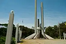 The monument consists of three concrete columns in different sizes, erected onto three separate concrete consoles, inclined at 45 degrees and standing on raft foundation. The longest column with 36.45 m (119.6 ft) height represents Anadolu (Anatolia) as the mainland of Turkey on Asia. The second column is 31.95 m (104.8 ft) tall and symbolizes Trakya (Thrace), the western part of Turkey on Europe. The third column, standing in the mid of the other two, represents Karaağaç with its 17.45 m (57.3 ft) height.[6][7]