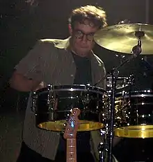 Fred Armisen (pictured in 2008) makes conspicuous usage of tom-toms, drum rolls and percussion change-ups on the album.