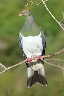 | A New Zealand pigeon (Hemiphaga novaeseelandiae) at Nga Manu Reserve, Waikanae, New Zealand | |