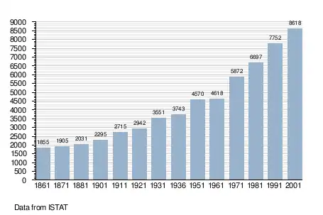 - ↑ "Popolazione Residente al 1° Gennaio 2018". Italian National Institute of Statistics. Retrieved 16 March 2019.