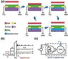 - ↑ Zhang, Chi; Tang, Wei; Zhang, Limin; Han, Changbao; Wang, Zhong Lin (2014-08-26). "Contact Electrification Field-Effect Transistor". ACS Nano. 8 (8): 8702–8709. doi:10.1021/nn5039806. ISSN 1936-0851. PMID 25119657.