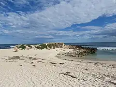 Trigg Island is a small rocky aeolianite limestone remnant of Pleistocene dunes, better characterised as an outcrop than an island, and as such is typical of the Perth coast. It is sometimes physically joined to the beach by movements of both the sand and the tide.