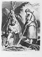 In the spring of 1821, Nodier, with three friends, left France to travel to Ben Lomond, in Scotland, the home of his literary idol Sir Walter Scott. He did not meet Scott there, but still published a book, Promenade de Dieppe aux montagnes d’Écosse (A Journey from Dieppe to the Scottish Highlands) about the trip after returning, which was successful enough to have an English translation.[2] In the preface to Trilby, Nodier acknowledged his inspiration for writing the story to come from his travels to the Scottish Highlands, and said the subject came from a preface or note to one of Scott's novels.[3] He also admitted to taking liberties with the Scottish place names to make them more euphonious in French, writing Argail for Argyll and Balva for Balvaig, since this was a work of imagination rather than fact.[3]