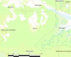 Trilla is located in the canton of La Vallée de l'Agly and in the arrondissement of Prades.