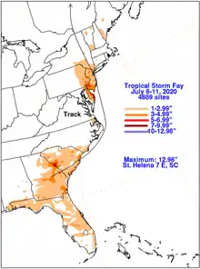 - 1 2 3 4 5 6 7 8 9 10 "Event Review: Tropical Storm Fay, July 10 2020". weather.gov. National Oceanic and Atmospheric Administration. 2020. Retrieved April 5, 2021.