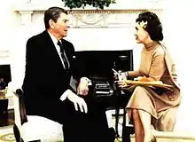 ![]() President Ronald Reagan interviewed by correspondent Feldman | |