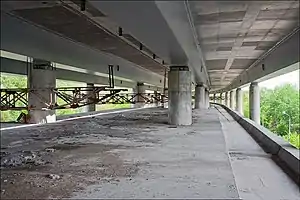 ![]() View of the future station's platform hall, located underneath the Podilskyi Metro Bridge. | |||||||||||